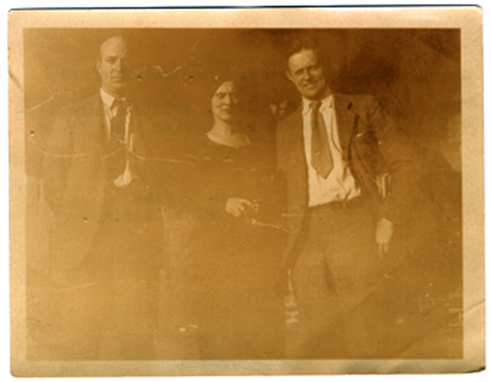 John Dos Passos (left), Adelaide Walker (center) and Charles Rumford Walker (right).  "...writers investigating conditions in Harlan mine field.  H.J. Evans/Pineville, Ky." noted on the back print.  1931  Gelatin silver print